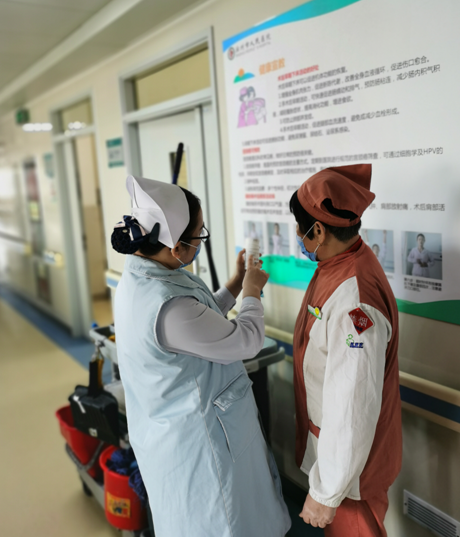 督導(dǎo)保潔員按比例配比84消毒液,每天兩次消毒病區(qū),擦拭患者常接觸的如走廊扶手、公共衛(wèi)生間等公共區(qū)域,做好出院病人的床單元終末消毒與處置。有效降低醫(yī)療機(jī)構(gòu)內(nèi)的傳播風(fēng)險(xiǎn),保障醫(yī)療質(zhì)量和患者安全。