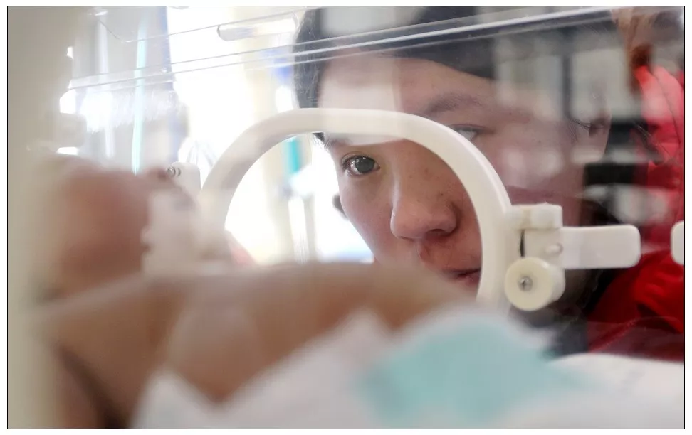 看著身體僅有成人巴掌大小,呼吸困難、全身皮膚紫紺的患兒,新生兒與小兒重癥科全體醫(yī)護(hù)人員展開(kāi)了一場(chǎng)生命與時(shí)間賽跑的拉鋸戰(zhàn),與患兒一起艱難地攻克了“呼吸關(guān)”“感染關(guān)”“營(yíng)養(yǎng)關(guān)”。(上述兩幅照片攝影:張英)
